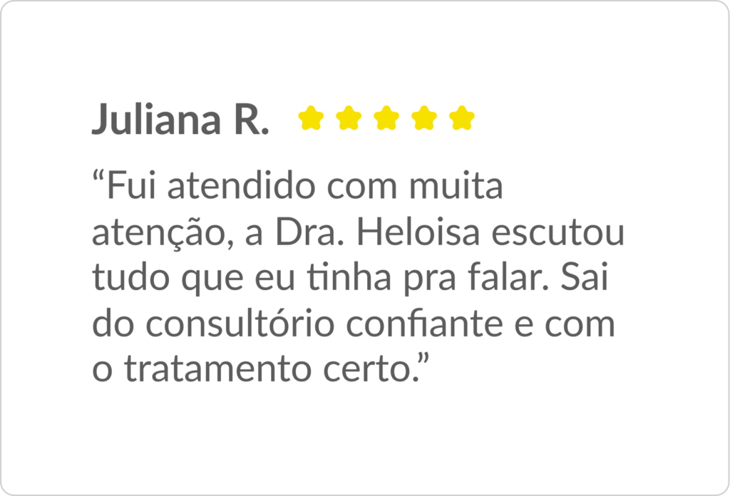 Sim, a Dra. Heloisa atende por convênio. Para saber se o seu plano é aceito, entre em contato com nossa equipe de atendimento e consulte a disponibilidade.